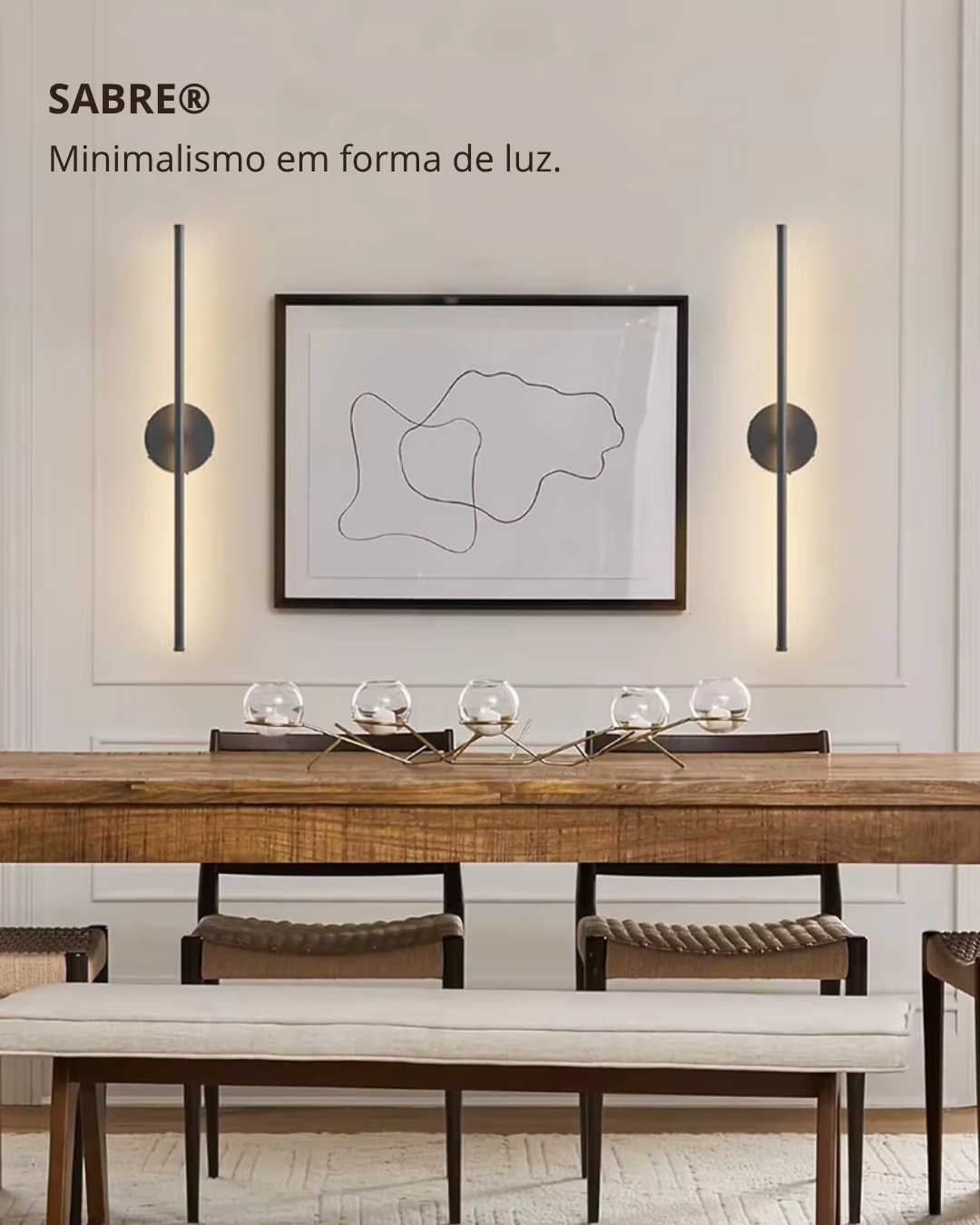 Com design ultrafino e presença marcante, a Sabre® é uma luminária de parede com estética moderna e funcionalidade inteligente. Seu corpo cilíndrico, delicado como uma linha de luz vertical, traz elegância visual e eficiência luminosa para qualquer ambiente.